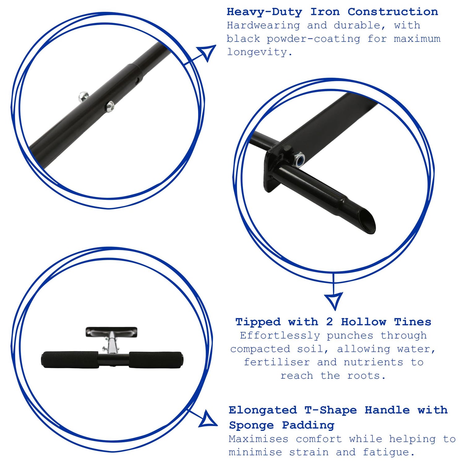Tipped with Two Hollow Tines - Effortlessly punches through compacted soil, allowing water, fertiliser and nutrients to reach the roots