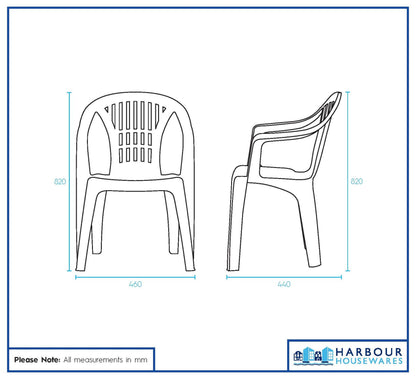 Two moulded armrests provide maximum comfort, while the stackable design makes storage in the off-season a breeze!