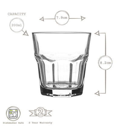 Taking inspiration from classic glassware design, each tumbler in the Aras collection features a ridged multi-faceted shape that promotes stability and balance - secure in the hand and less likely to roll off a surface if knocked over. The 200ml capacity creates an ideal vessel for serving your favourite scotch, bourbon or whisky, either straight-up, on the rocks or as the base of a refreshing lowball cocktail.