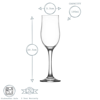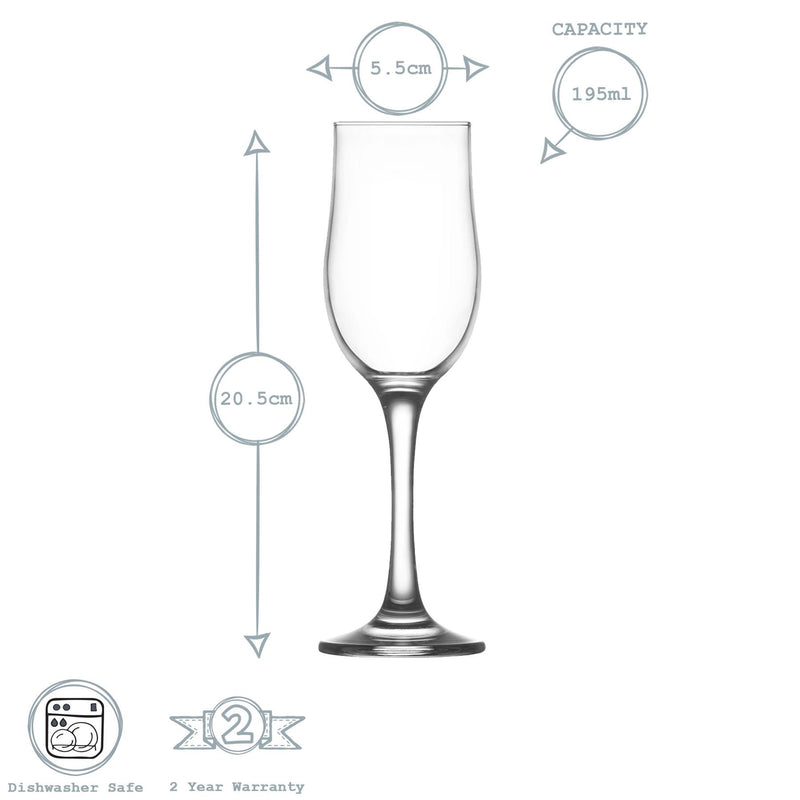 LAV 6 Piece Nevakar Glass Champagne Tulips Set - 195ml