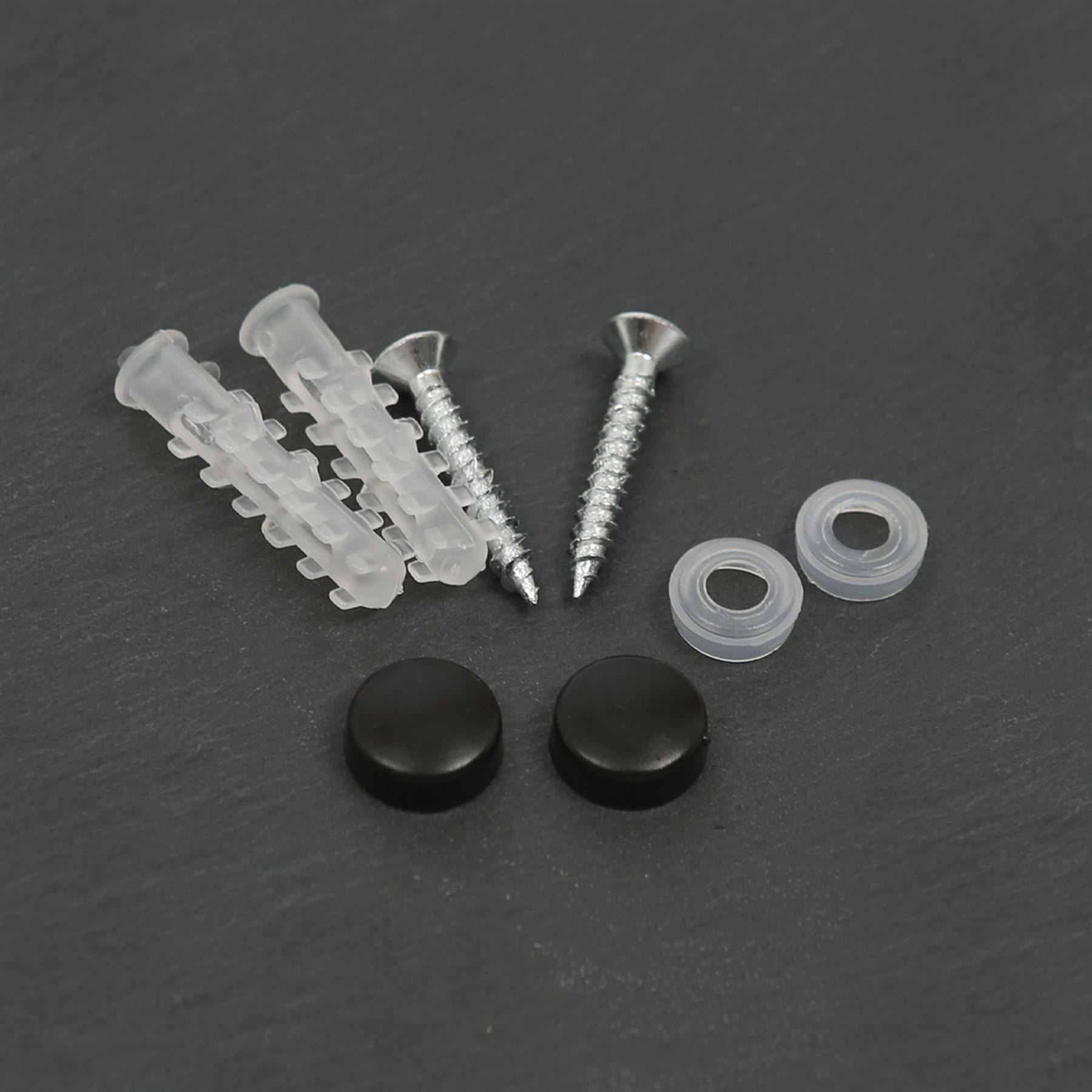 Each plaque comes with a set of wall plugs, screws and screw caps for easy installation.