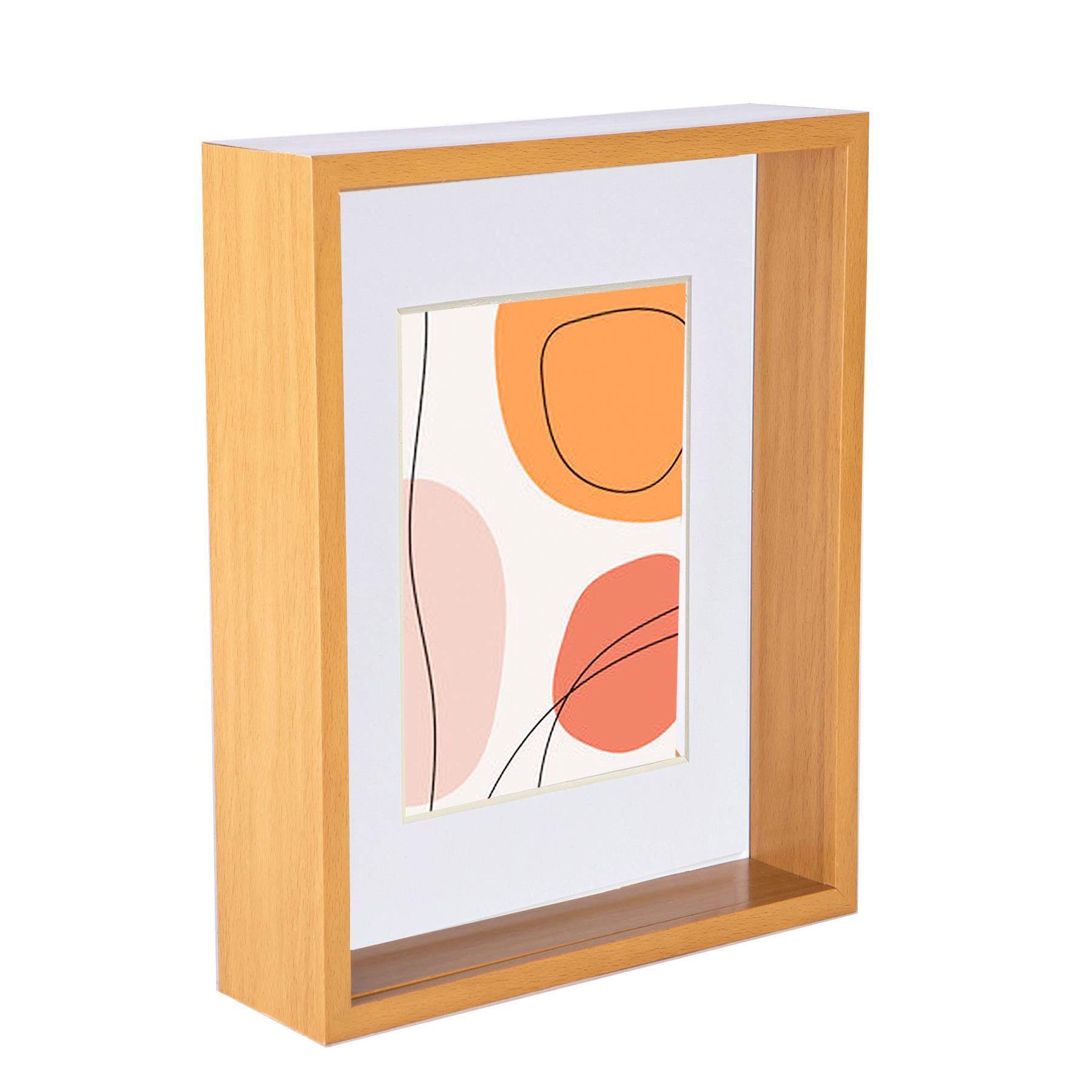 8" x 10" Light Wood 3D Deep Box Photo Frame - with 5" x 7" Mount