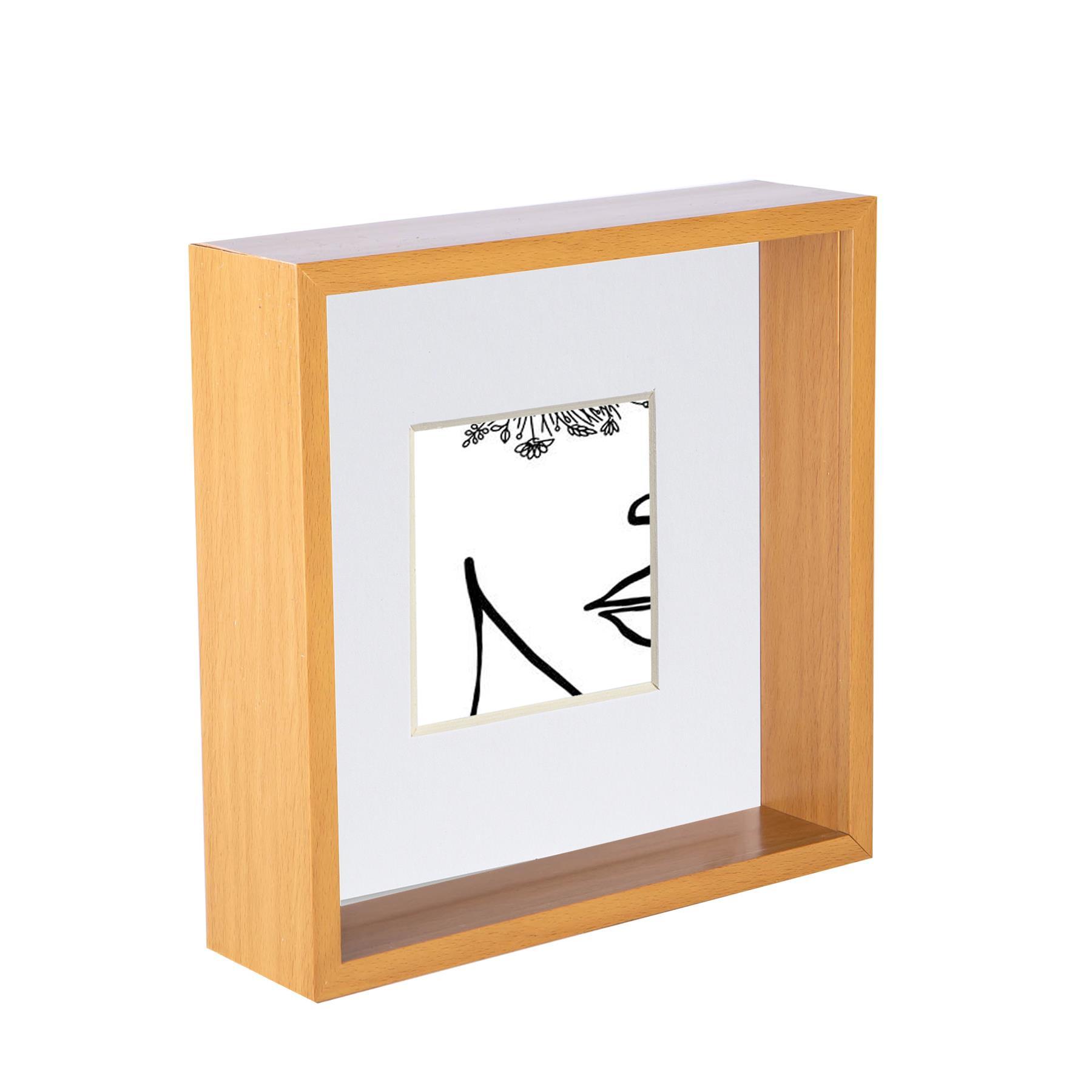 8" x 8" Light Wood 3D Deep Box Photo Frame - with 4" x 4" Mount
