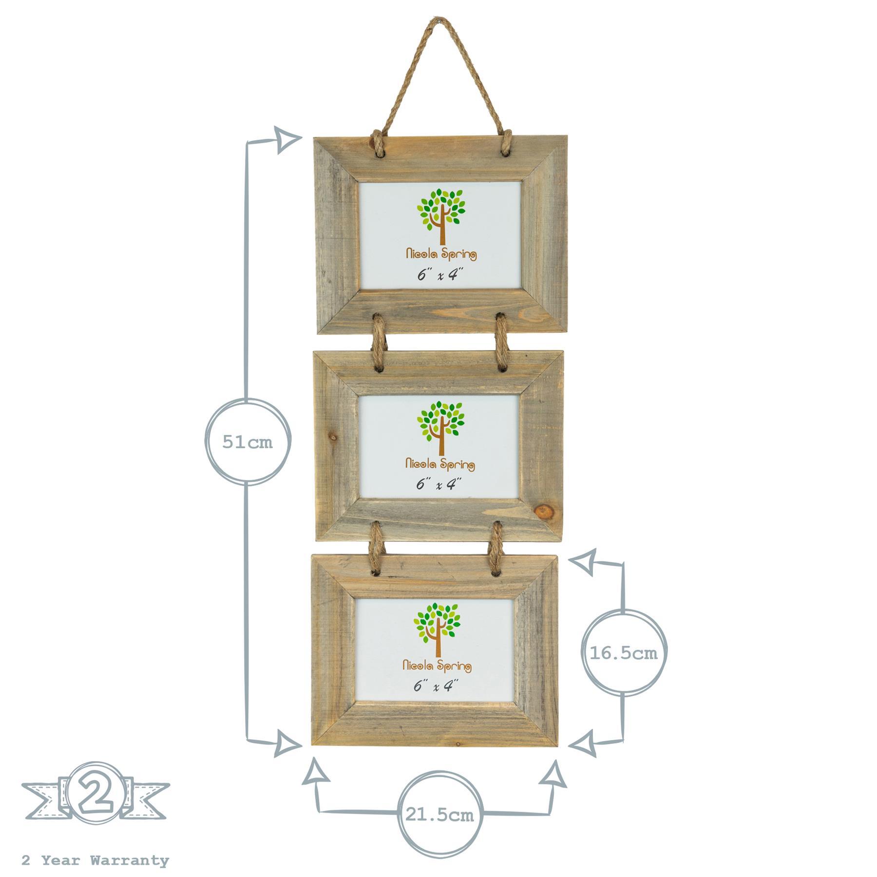 Add some rustic charm to your home and showcase your favourite prints and photos with this Triple Aperture 6" x 4" Hanging Wooden Picture Frame from Nicola Spring.