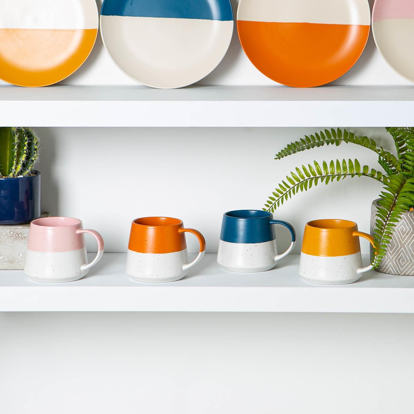 Add a splash of style and colour to your tea or coffee morning with this Dipped Flecked Stoneware Belly Coffee Mug from Nicola Spring.