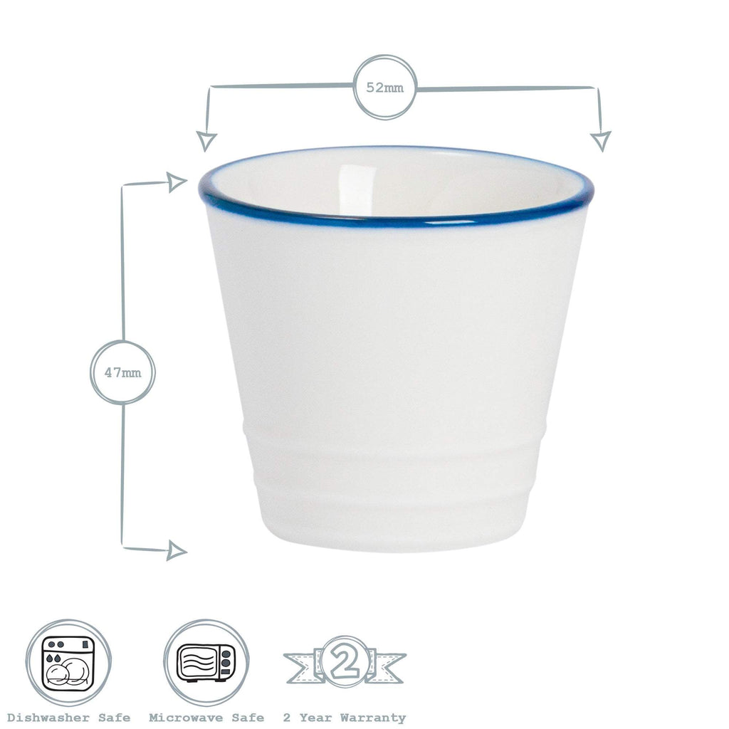 The sturdy porcelain construction of these pieces balances that old-world aesthetic with a durability perfectly suited to the rigours of 21st Century living. Soft, rolled rims protect against chipping if knocked, while the tapered mug-style shape provides the perfect presentation piece for traditional hard or soft-boiled eggs.