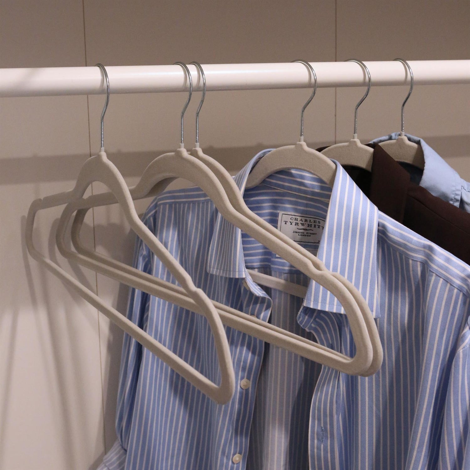 Each hanger also features two shoulder notches for holding vests and strappy dresses, while the non-slip velvet coating helps to keep your shirts, jumpers and other clothing on the hanger - no more picking crumpled pieces off the wardrobe floor!