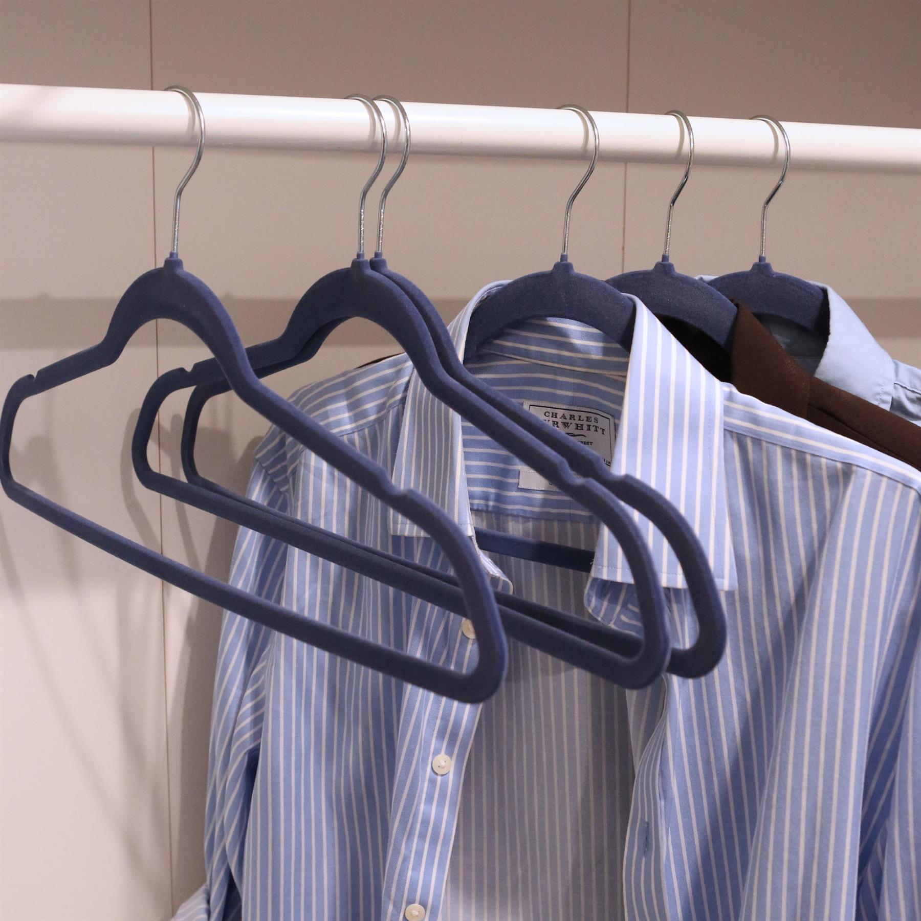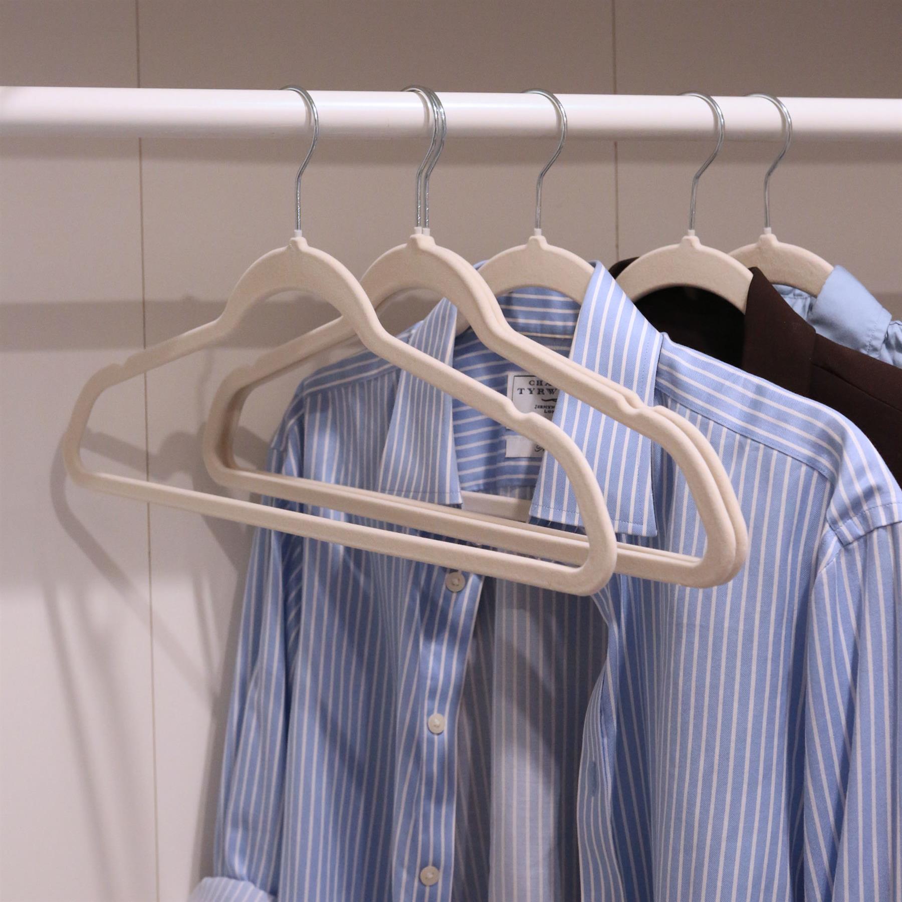 Each hanger also features two shoulder notches for holding vests and strappy dresses, while the non-slip velvet coating helps to keep your shirts, jumpers and other clothing on the hanger - no more picking crumpled pieces off the wardrobe floor!