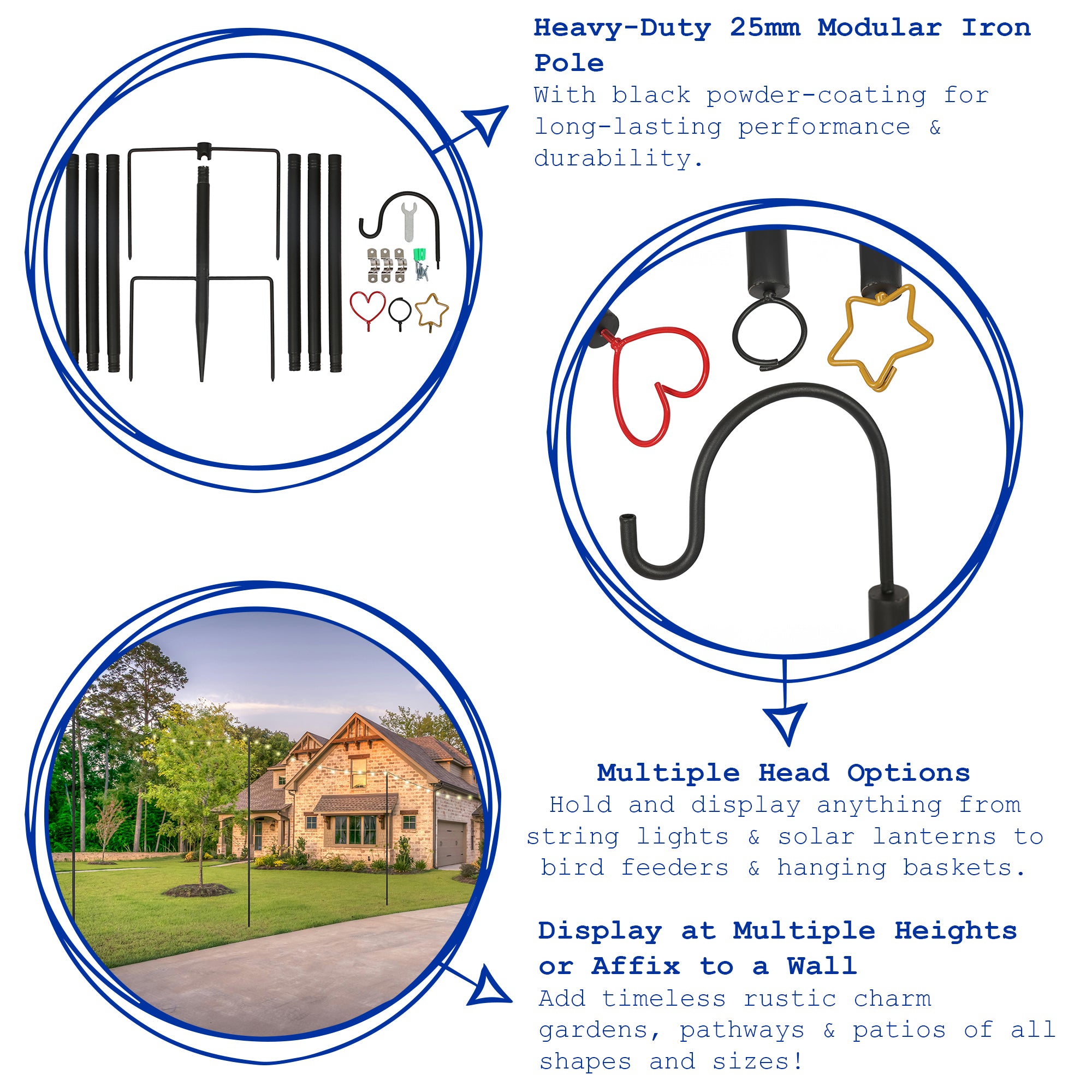 A choice of multiple head attachments, meanwhile, lets you use this pole for a wide variety of outdoor patio and garden decorations, from string lights and solar lanterns to bird feeders, hanging baskets and more!