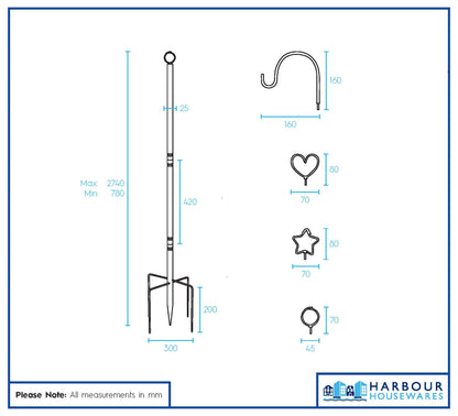 The heavy-duty powder-coated 25mm modular iron pole can be disassembled into multiple sections, allowing for a height of anywhere between 0.6 and 2.5M above ground.