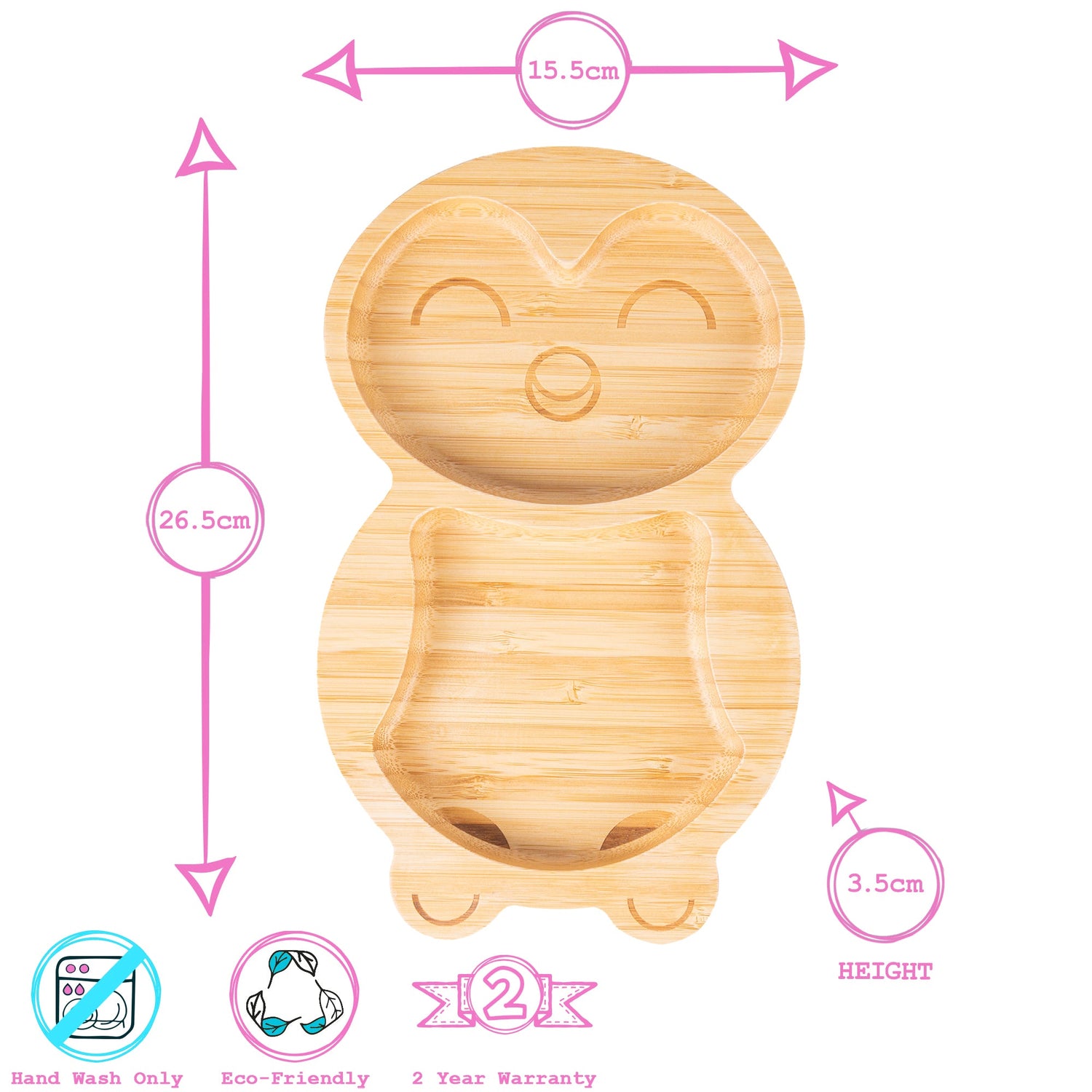 Each dish has been expertly crafted from natural 100% bamboo and is melamine free. This provides incredible strength and resilience while also enjoying all the inherent anti-bacterial and anti-microbial qualities of the bamboo plant. Perfectly designed for meals at all times of day, the segmented Penguin design of this plate allows you to keep foods separated for easy feeding, while the heat-resistant properties of bamboo keeps tiny fingers protected should they reach out and touch the sides.