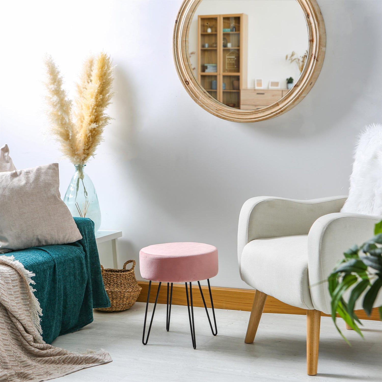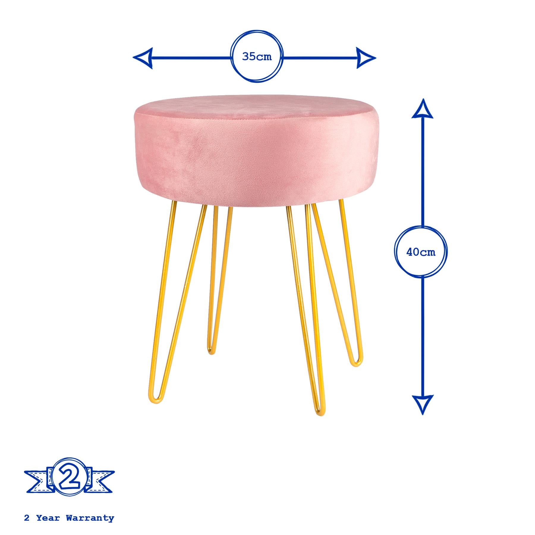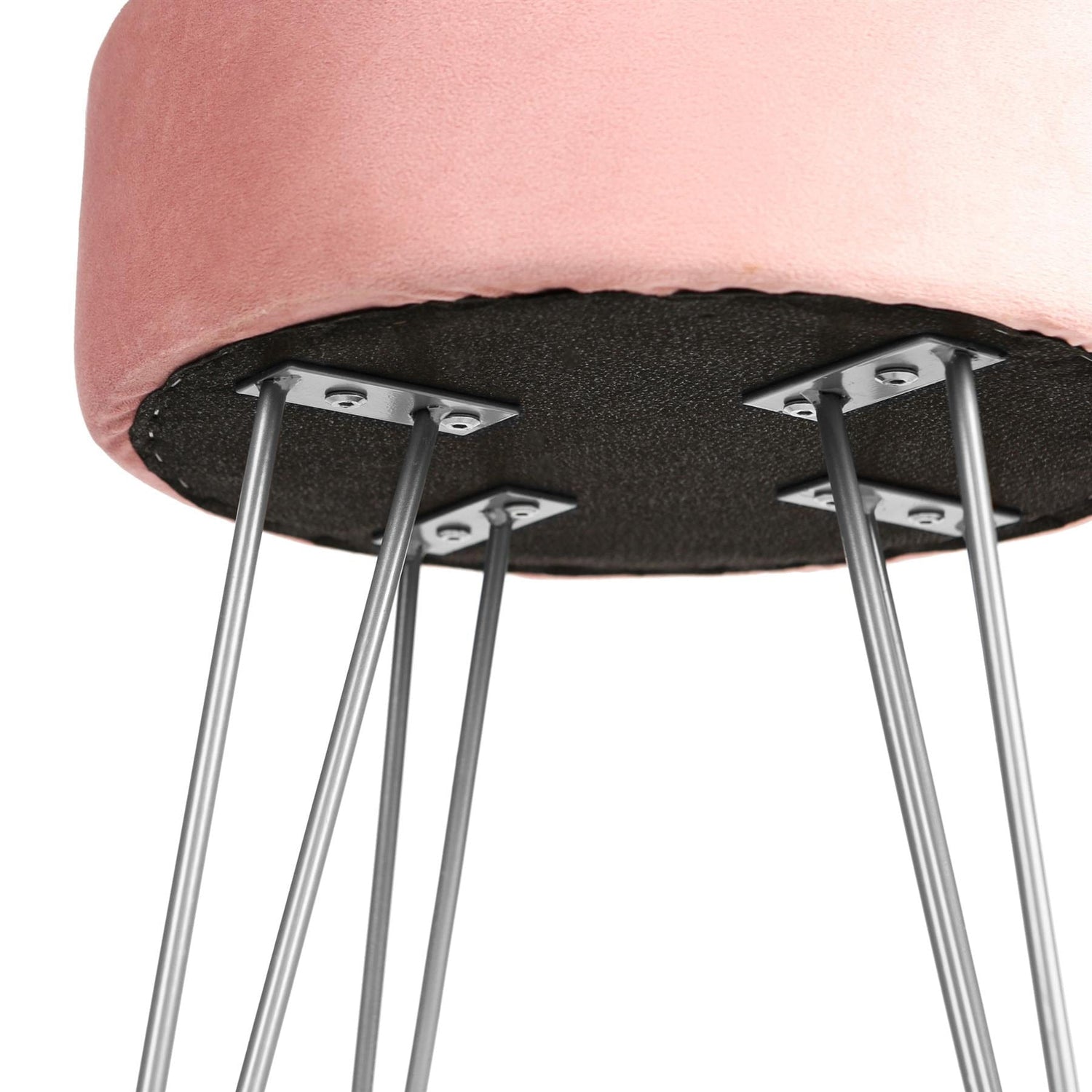 A layer of foam padding neatly encompasses the stools, ensuring lasting comfort, whilst the soft velvet covering creates the ultimate level of luxury. The metal hairpin legs, meanwhile, protect surfaces from scuffs and scratches whilst further accentuating the stool's elegant, stylish aesthetic.