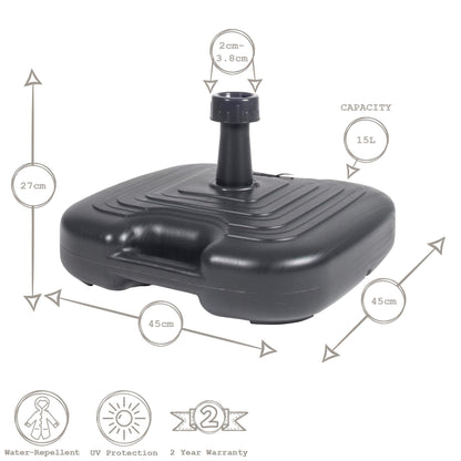 The Resol range of Garden Parasol Bases provides a convenient and reliable holding stand for any garden umbrella, creating a place for friends and family to congregate and relax in the shade of the blazing summer sun.