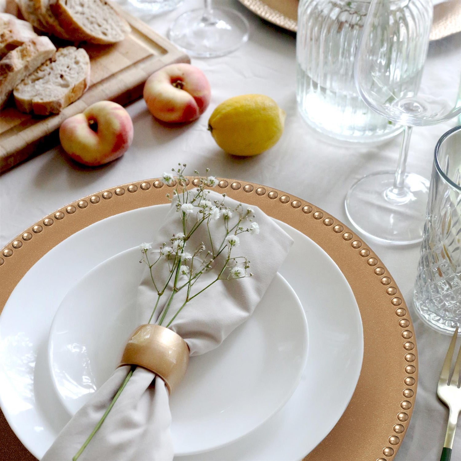 Metallic Finish with Beaded Decoration - Adds a touch of timeless elegance and luxury to any table setting