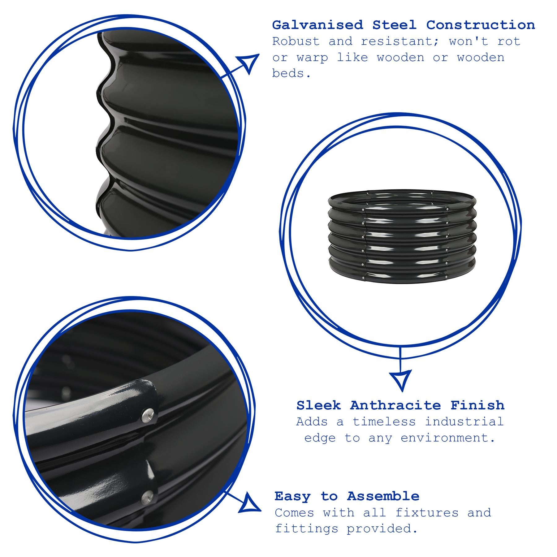 Round Raised Garden Bed - 90cm x 45cm
