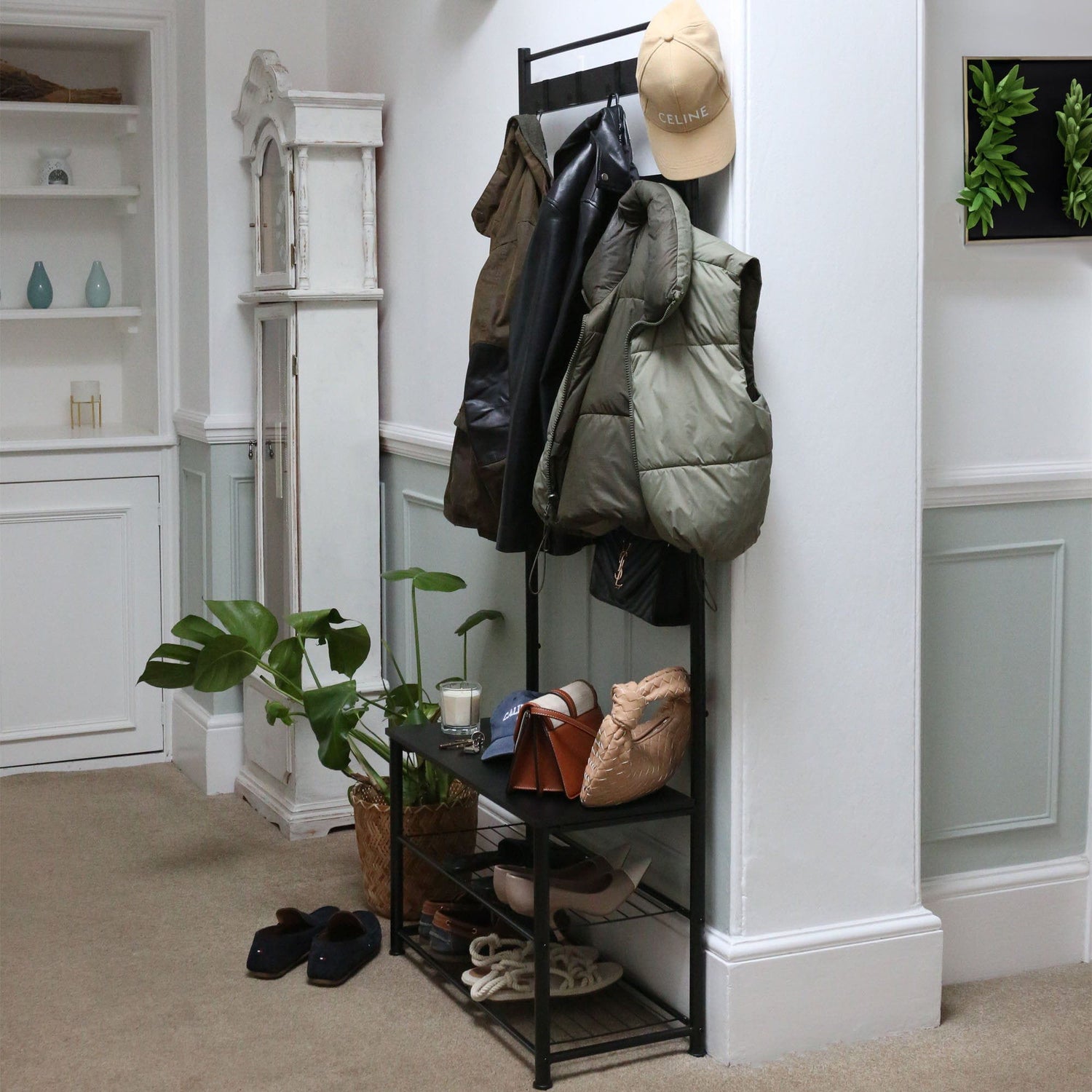Keep home hallways neat and organised with this Free-Standing Steel Coat Rack Storage Unit from Harbour Housewares