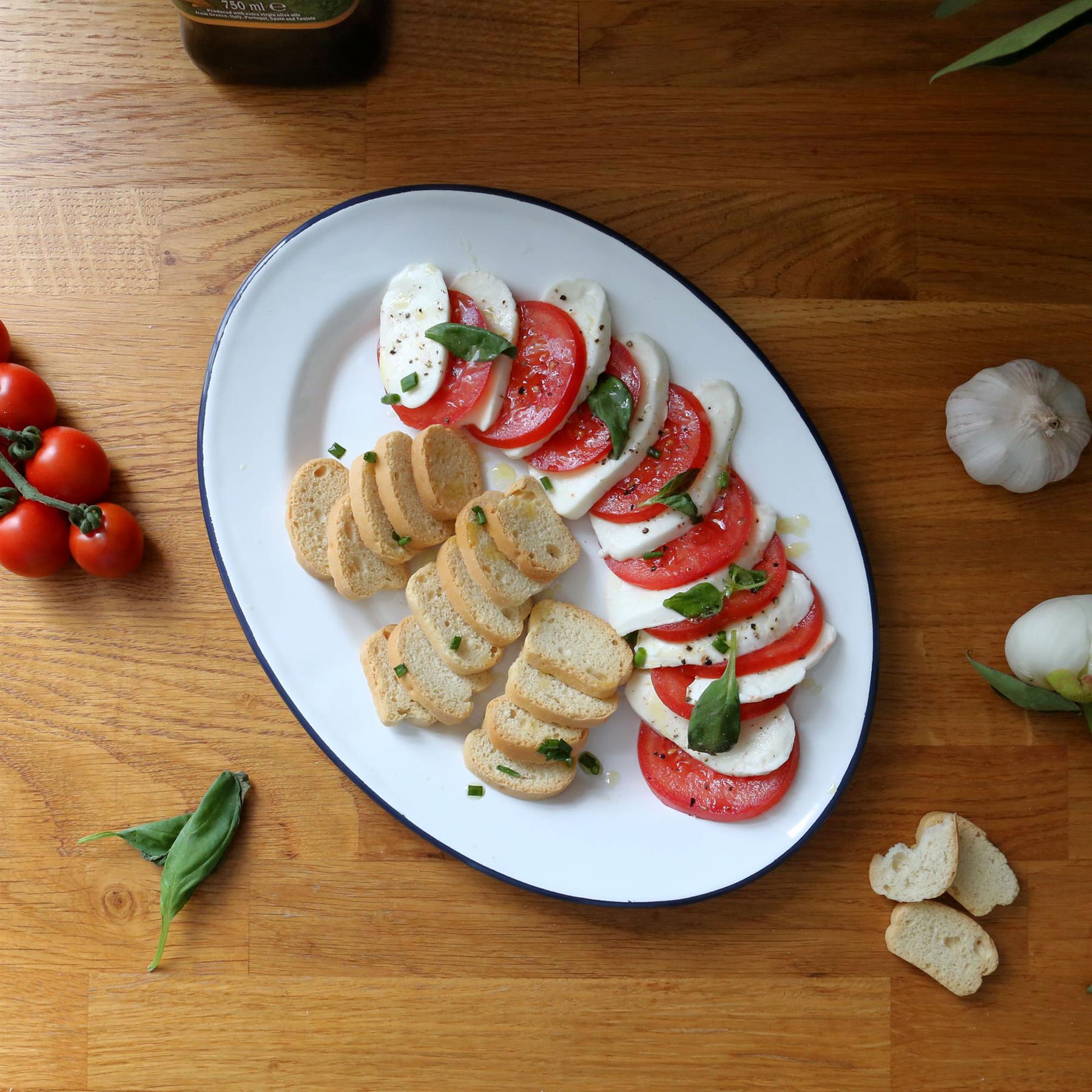 Add some traditional rustic tone and texture to your table service with this White Enamel Serving Platter from Argon Tableware.