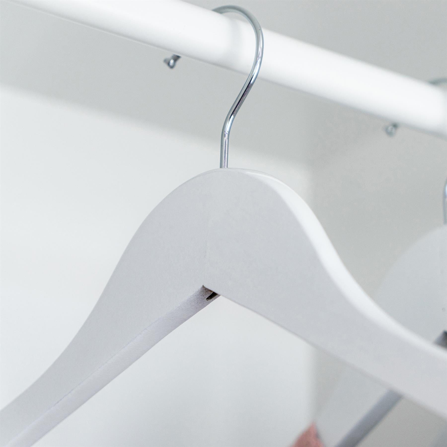 Twin shoulder notches help to keep strappy dresses, vests and even cardigans secure without slipping, while a handy trouser bar offers the opportunity to house an entire outfit on a single hanger to help save on storage space.
